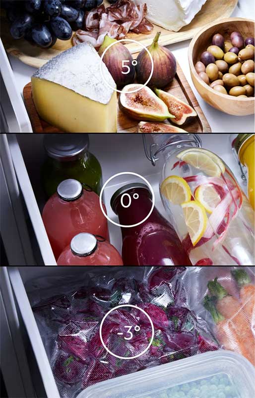 Con el cajón convertible MultiChill 0°, se puede ajustar la temperatura ideal para los ingredientes. Desde -3 °C hasta 5 °C. Conserva el sabor y la textura ideales de tu comida.